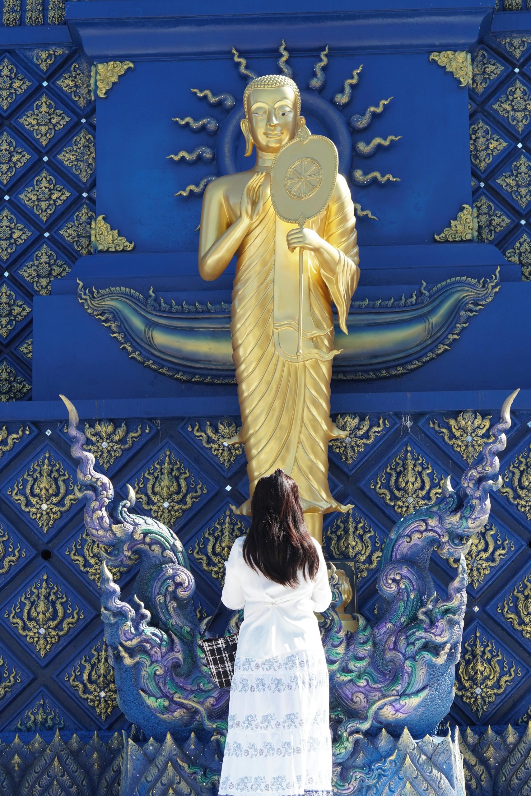 - Контраст ослепительно белого Ват Ронг Кхун и глубоких синих оттенков Ват Ронг Суа Тен